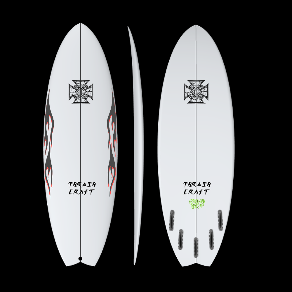A new snub nosed/ 5 fin option groveler hot off the press. Built for maximum speed and control in small waves with just the right amount of release. The slightly unorthodox quad fin placement allows the same speed driven feeling you know and love from a normal quad with less of that “going straight fast” feel, and more of the “going fast with purpose” feel. The Smash raft’s low entry and exit rocker, 50/50 rails, and slight single to double to mild V allows for the ultimate grovel machine while the quad set up also provides more drive for waves in the average and above range.